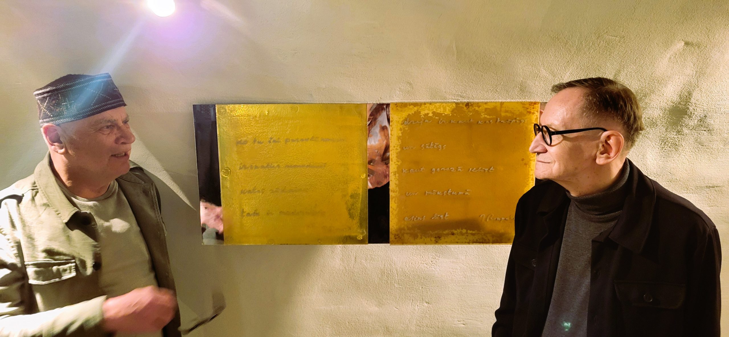 The exhibition “Texts inside the Glass. Dainis Gudovskis. Jānis Rokpelnis” is on view in the Small Exhibition Hall of Mentzendorff’s House from March 25 to May 12.