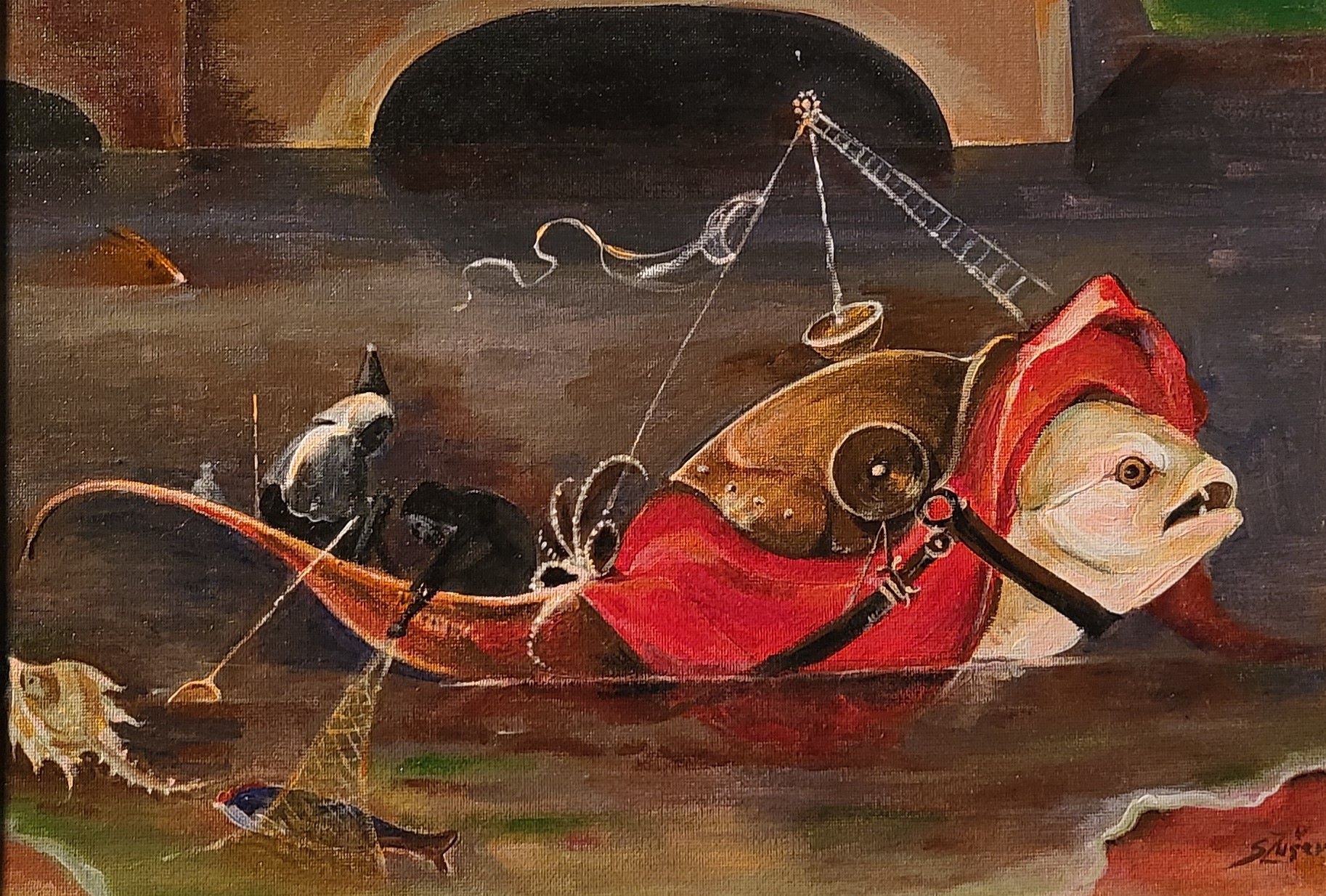 Signes Zuševicas glezna no izstādes “Viduslaiku mistērijas Hieronīma Bosa pēdās”, kas apskatāma Mencendorfa namā no 2025. gada 18. oktobra līdz 14. novembrim.