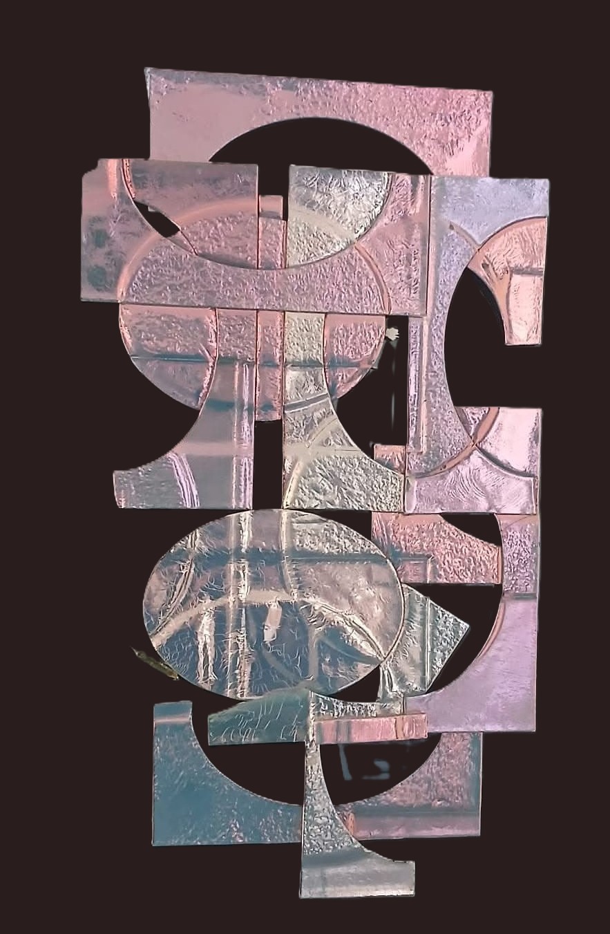 Dainis Gudovskis. Kompozīcija – Jāņa Rokpeļņa dzejas rindas uz stikla.