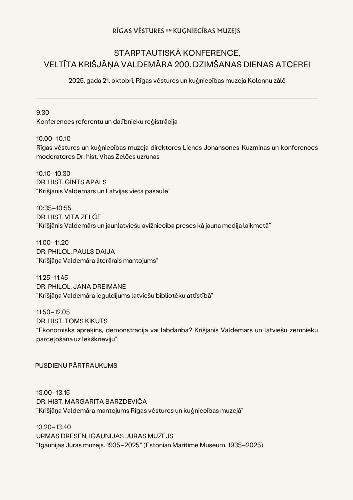 Krišjānim Valdemāram – 200: starptautiska konference Rīgas vēstures un kuģniecības muzejā