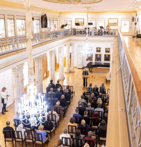 Rīgas vēstures un kuģniecības muzeja Kolonnu zālē notika Krišjāņa Valdemāra 200. dzimšanas dienas svinības un izstādes “Krišjānis Valdemārs. Latvietis. Ledlauzis” svinīgā atklāšana.