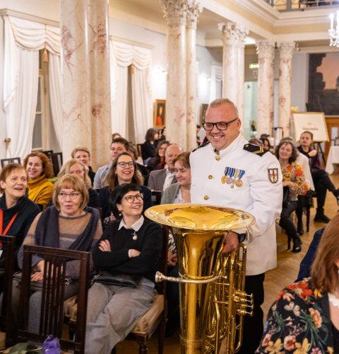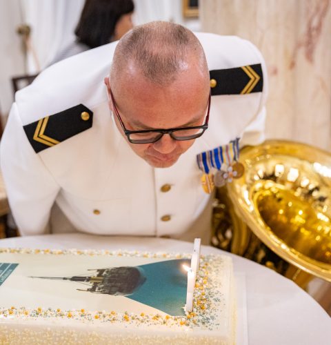 Svinīgo programmu bagātināja Nacionālo bruņoto spēku pūtēju orķestra muzikālie akcenti, un svētku tortes sveču nopūšana tika uzticēta orķestra spēcīgākajam pūtējam.